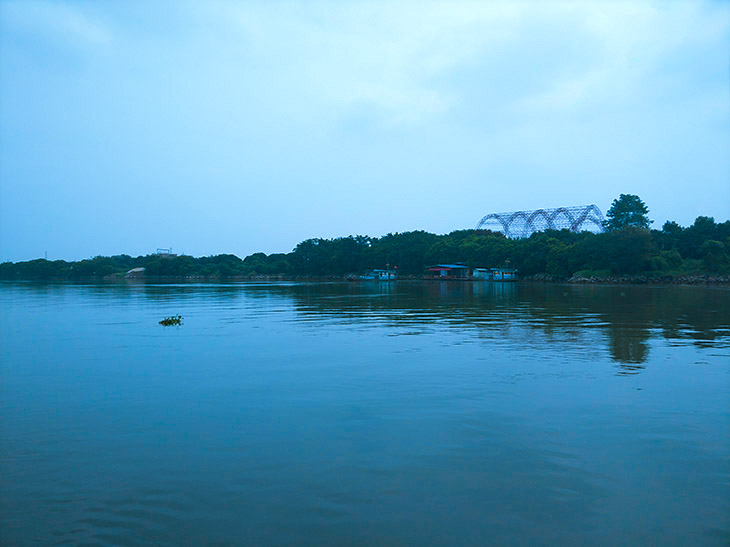 下到渡口,大王洲盎然的綠意隔江在望。雖已立冬,徐來的江風依然熏暖如春。一艘渡輪在江兩岸來回行駛,擺渡過江的人。只見渡輪先從渡口向江心斜行,越過江心之后,船尾開始發(fā)力,以船頭為支點,劃了個半圓。原來它要做個漂移。憑著舵手嫻熟的技術(shù),時機得當?shù)陌盐眨奢啿黄灰械赝?吭诙煽谶吷稀W尦鮼碚У降奈覀冾I(lǐng)略到了這次活動給我們的番驚喜。